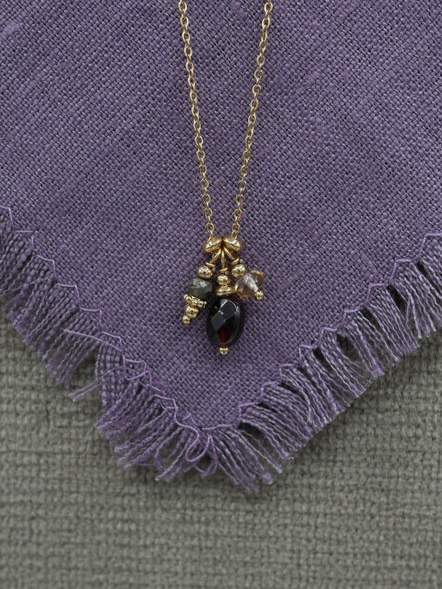 Le collier Alma associe élégance et raffinement grâce à son pendentif en pierre de grenat facetté 6x8 mm, sublimé par des perles de pyrite et de citrine. Ce bijou simple mais chic offre une touche de couleur profonde et lumineuse, idéale pour rehausser subtilement toute tenue. Conçu pour ceux qui apprécient la qualité et l’harmonie des pierres naturelles, ce collier apporte une signature élégante et authentique à votre style quotidien.