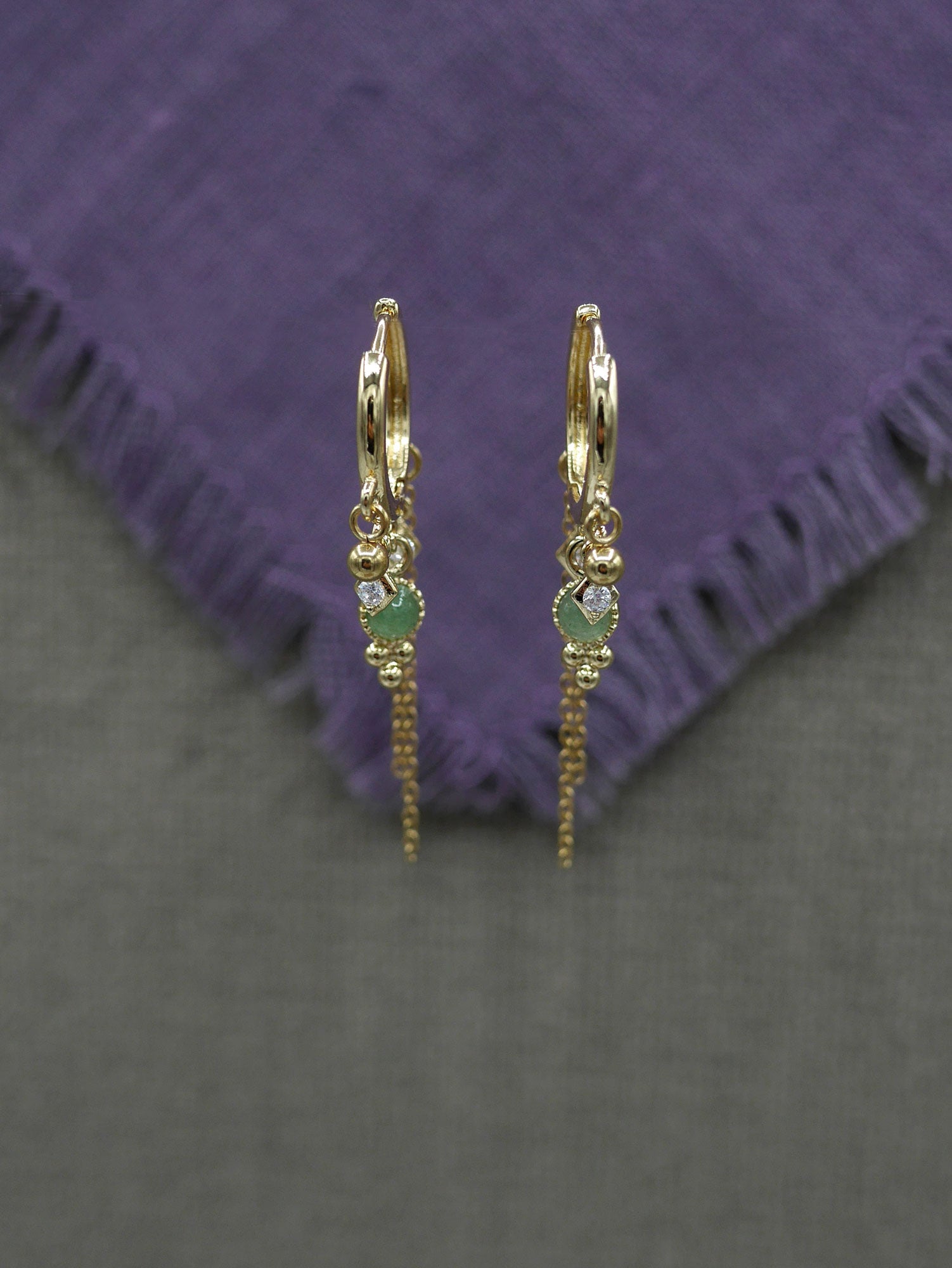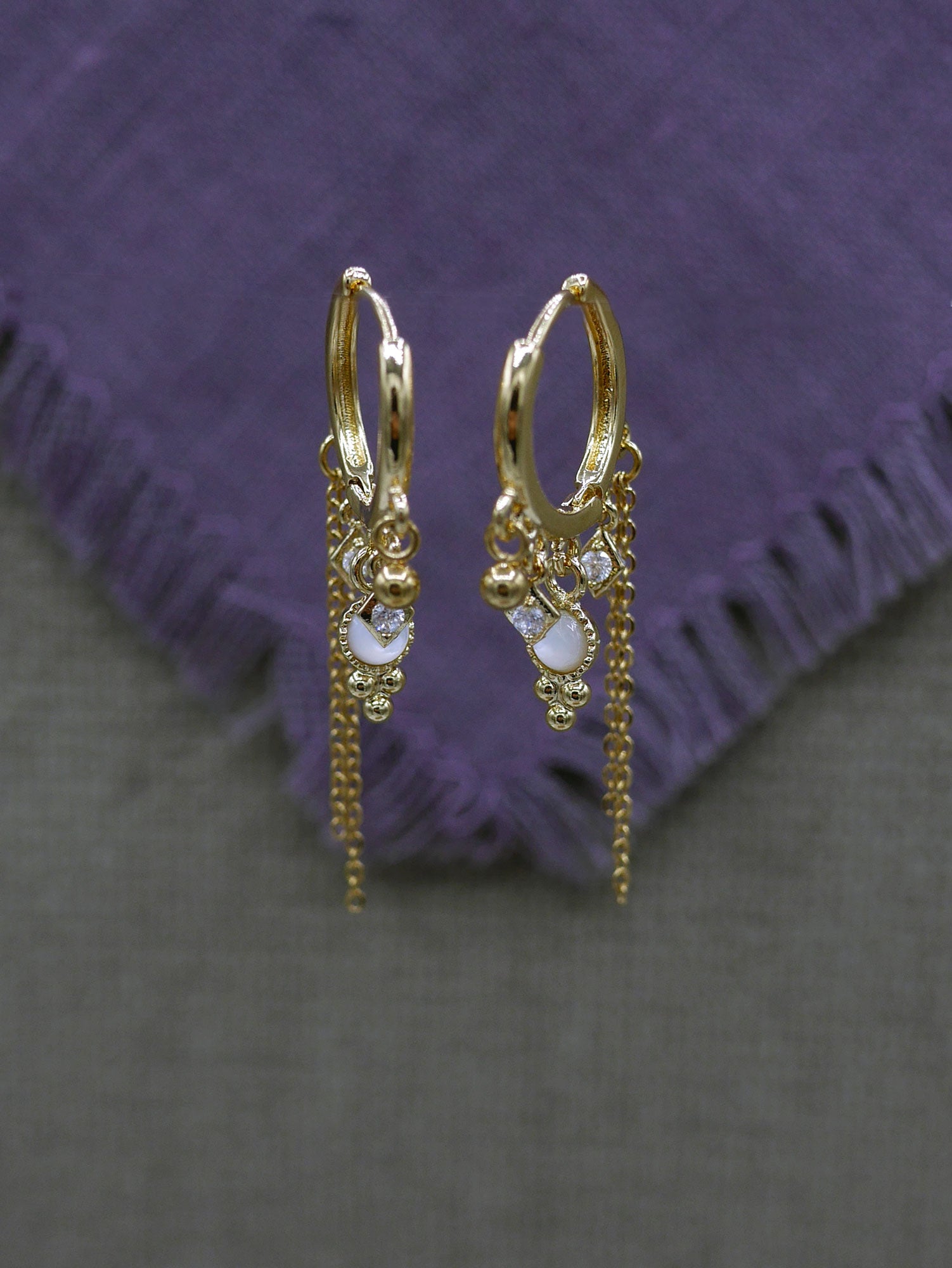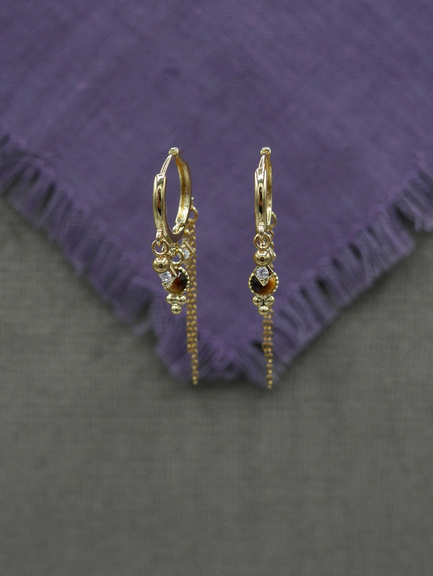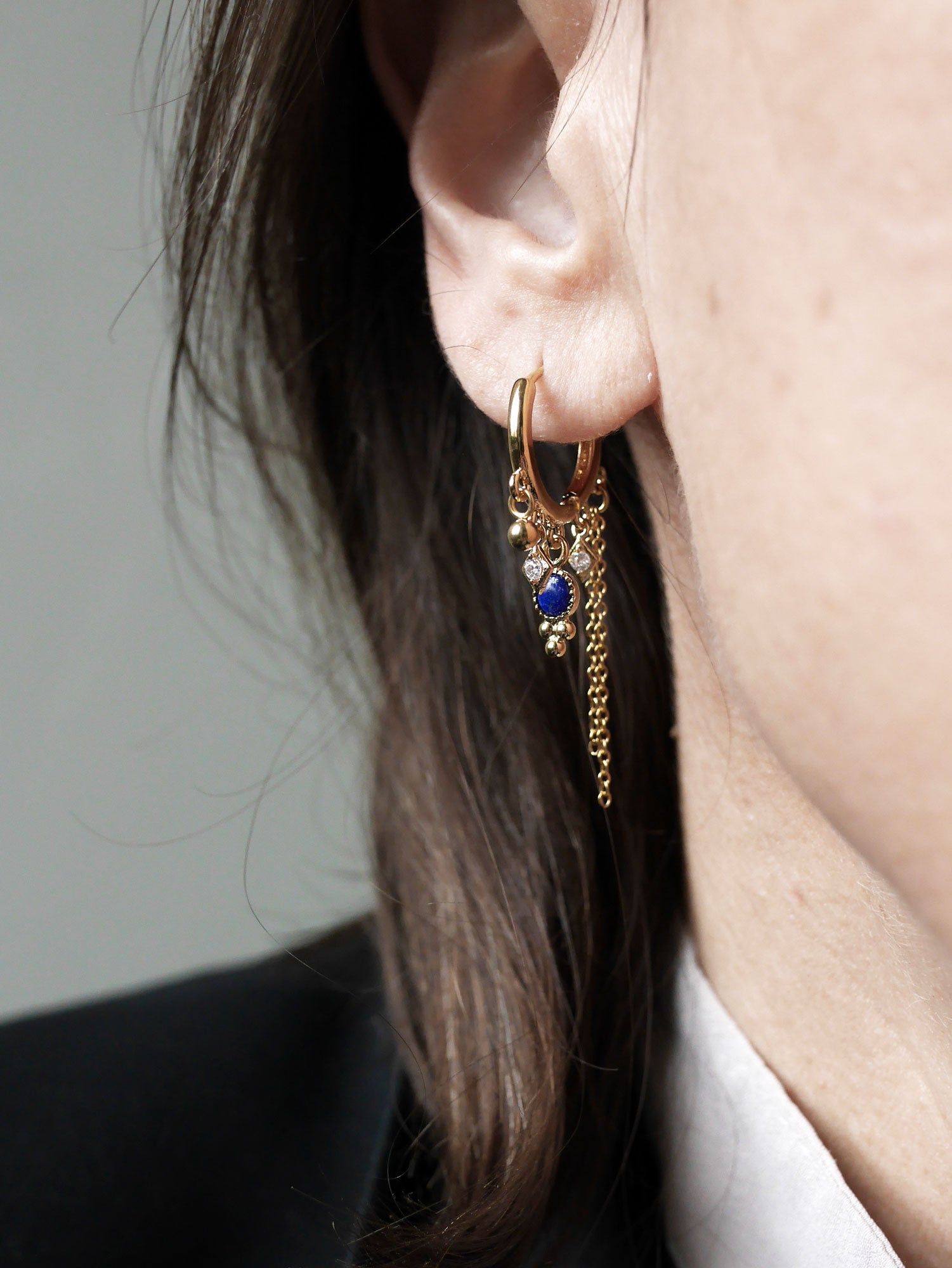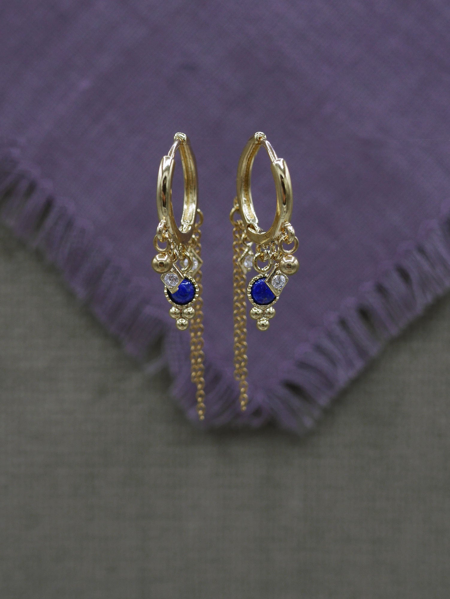 Boucles oreilles type anneau créole , composé de 5 suspensions breloques dont un motif central avec pierre naturelle de 4mm et chainette