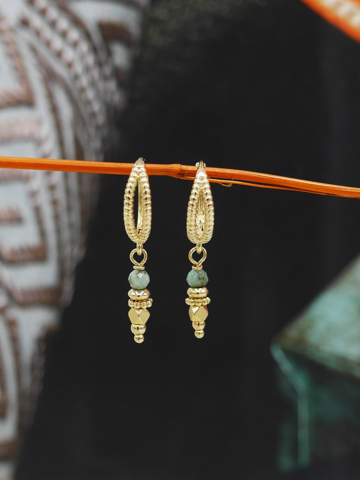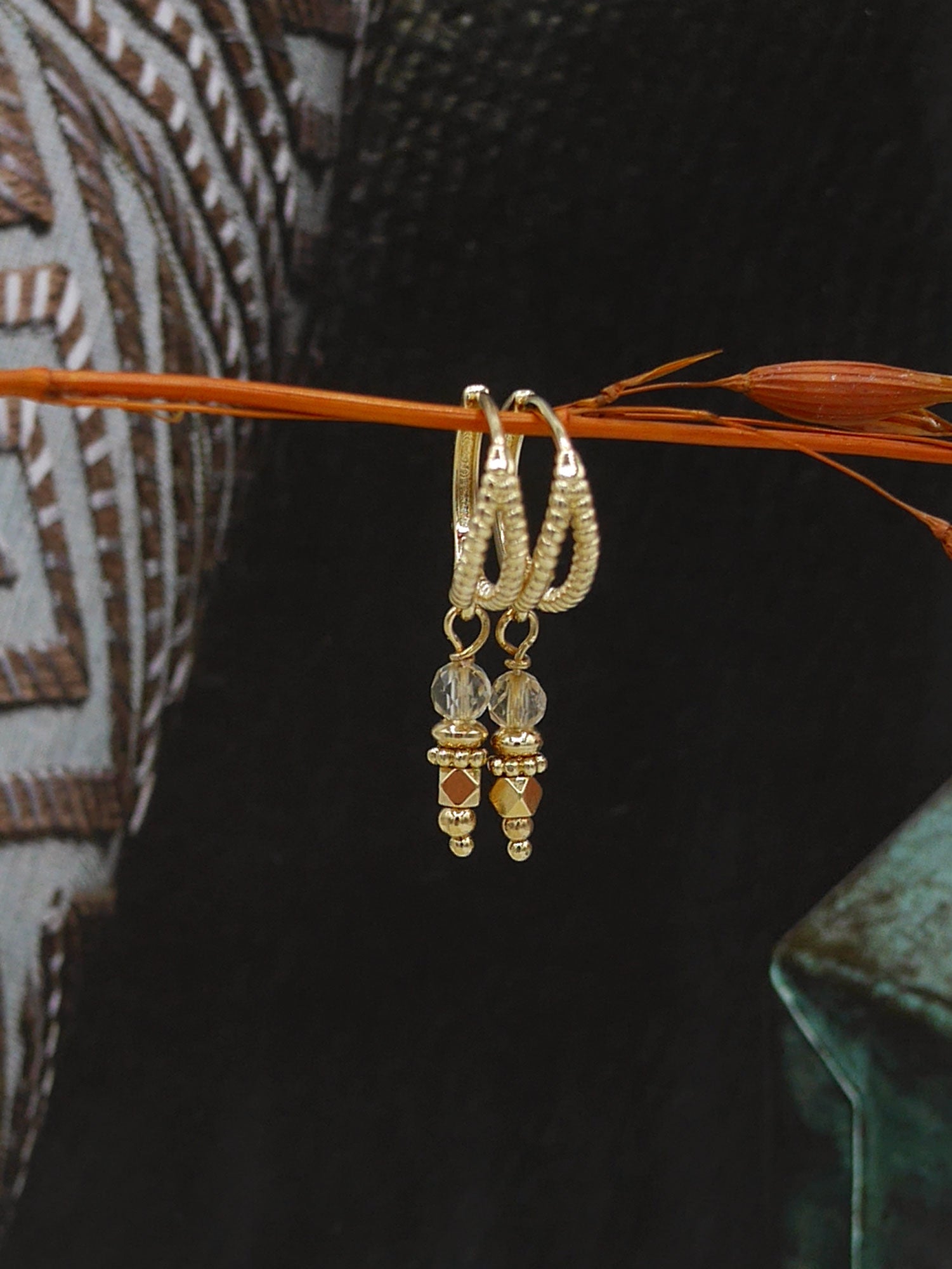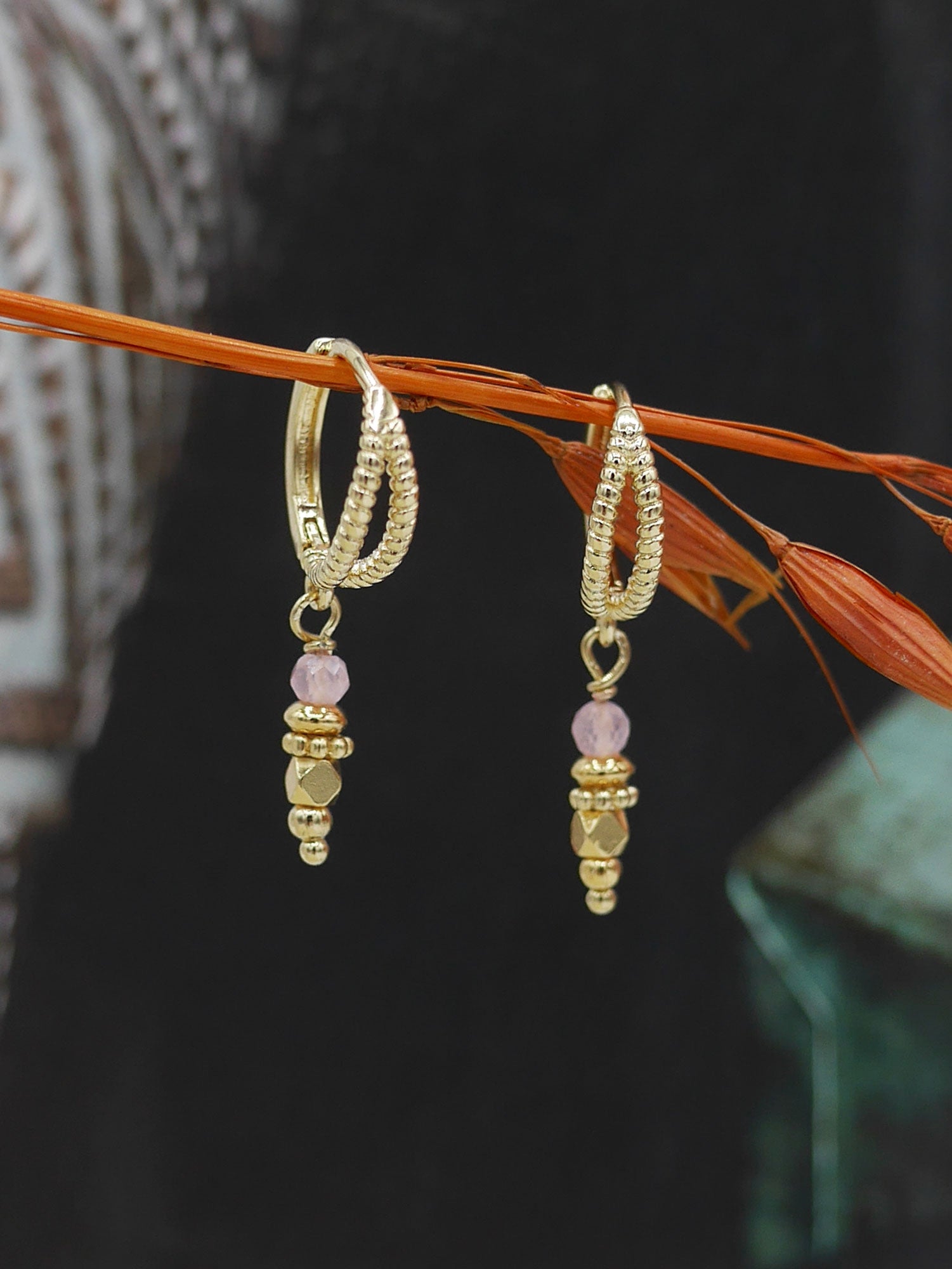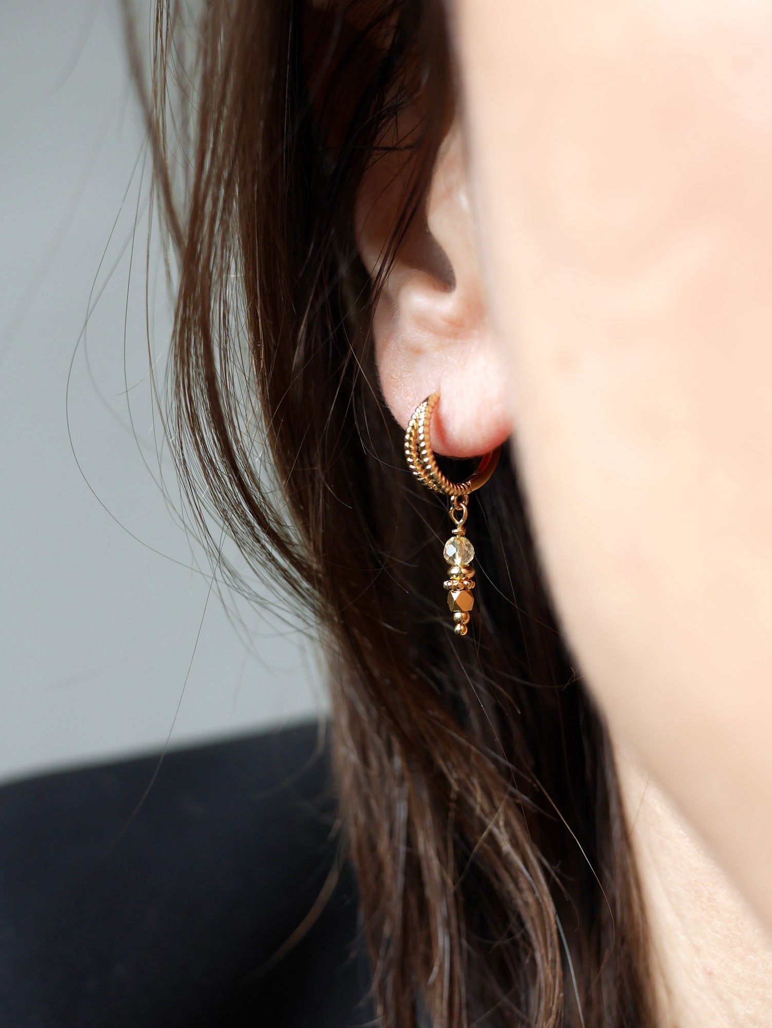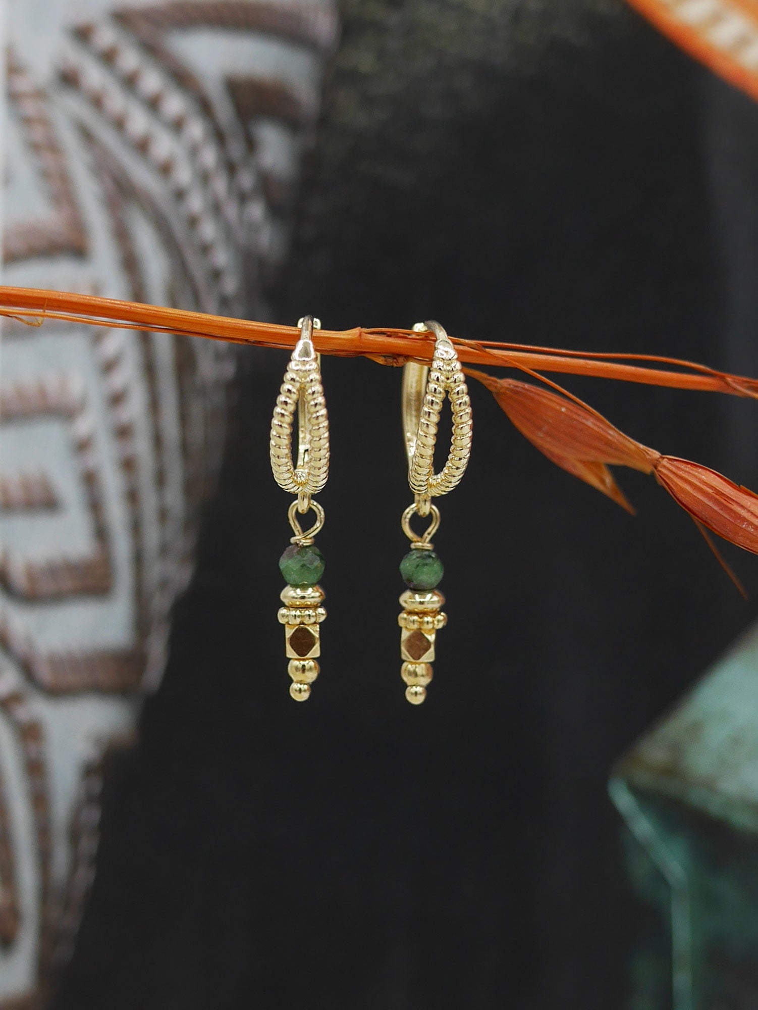 Découvrez les mini créoles torsadées Ovaline, sublimées par de petites pierres fines facettées de 3 mm. Ces petites boucles d'oreilles apportent une touche d’éclat et de délicatesse à votre look, parfaites pour sublimer votre style au quotidien. Elles sont légères et confortables à porter. Offrez-vous un bijou unique qui allie élégance et savoir-faire artisanal.